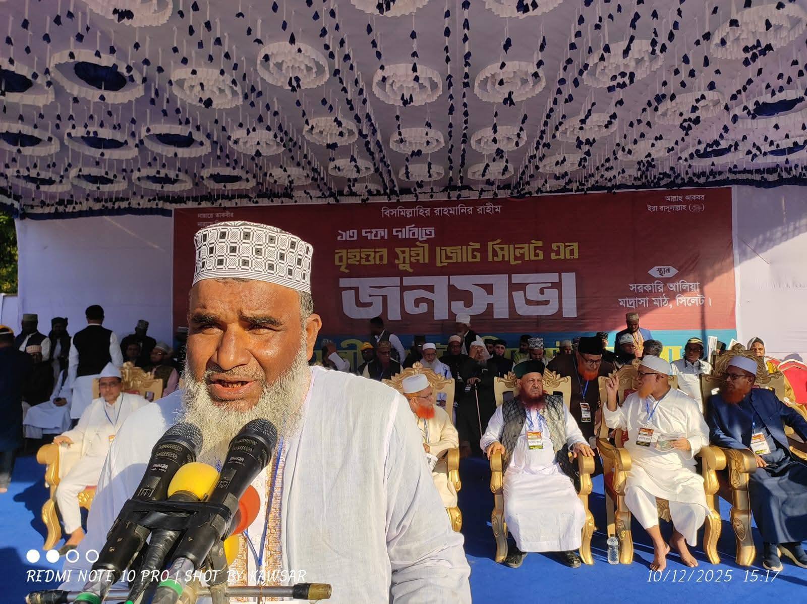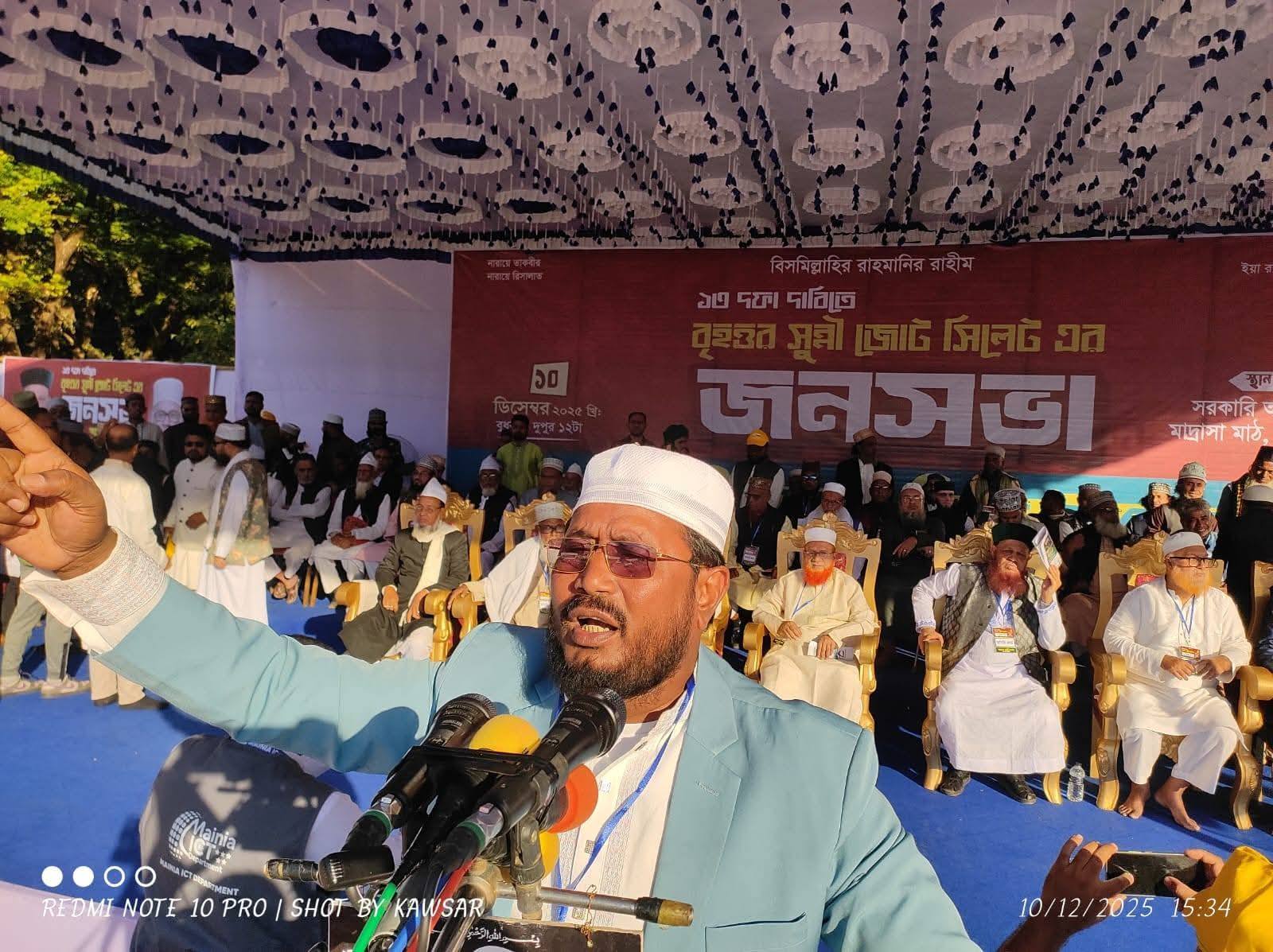 সিলেটে বৃহত্তর সুন্নী জোটের বিশাল জনসভা: ১৩ দফা দাবি ও জাতীয় নির্বাচন নিয়ে কঠোর সতর্কবার্তা